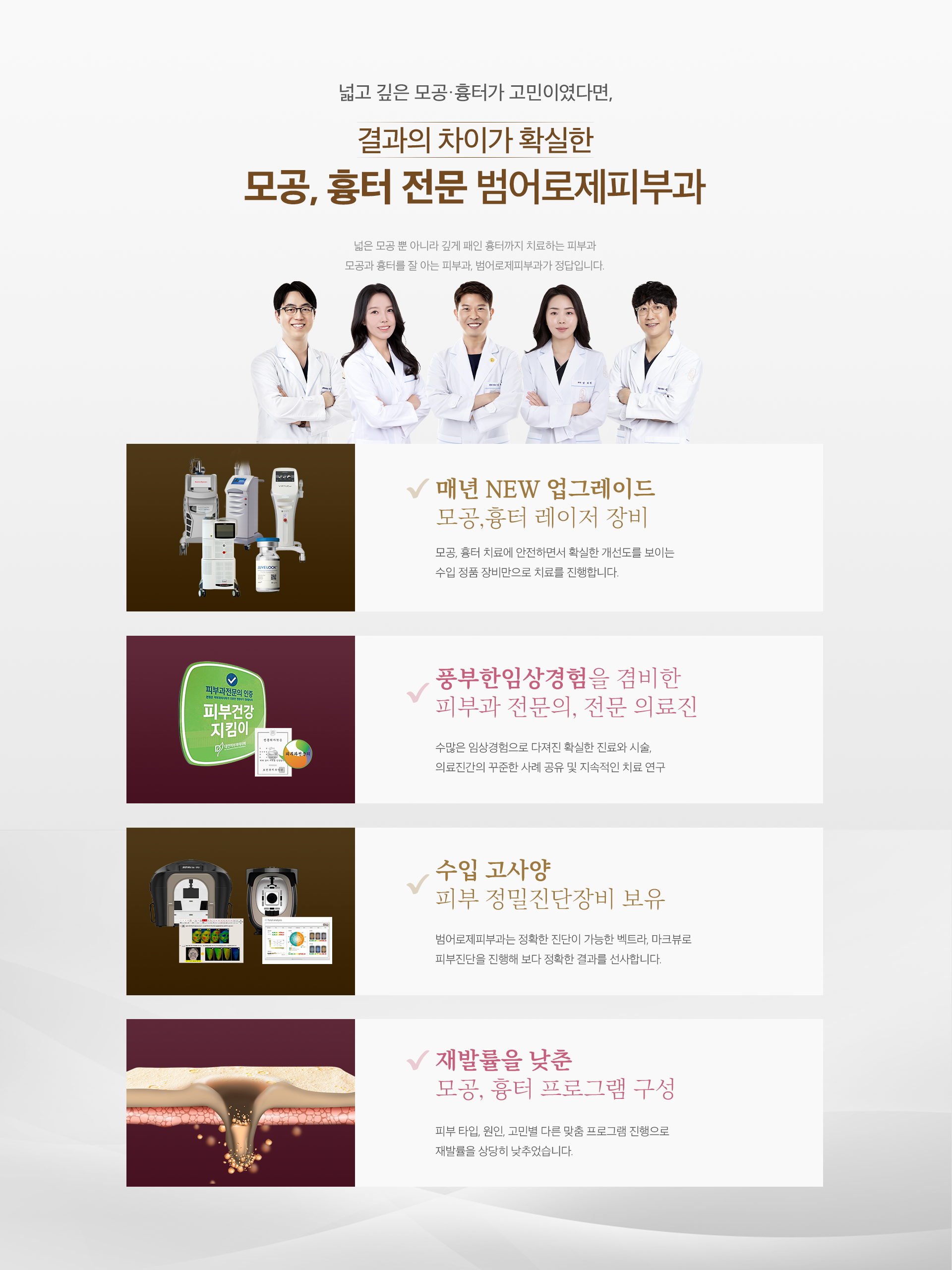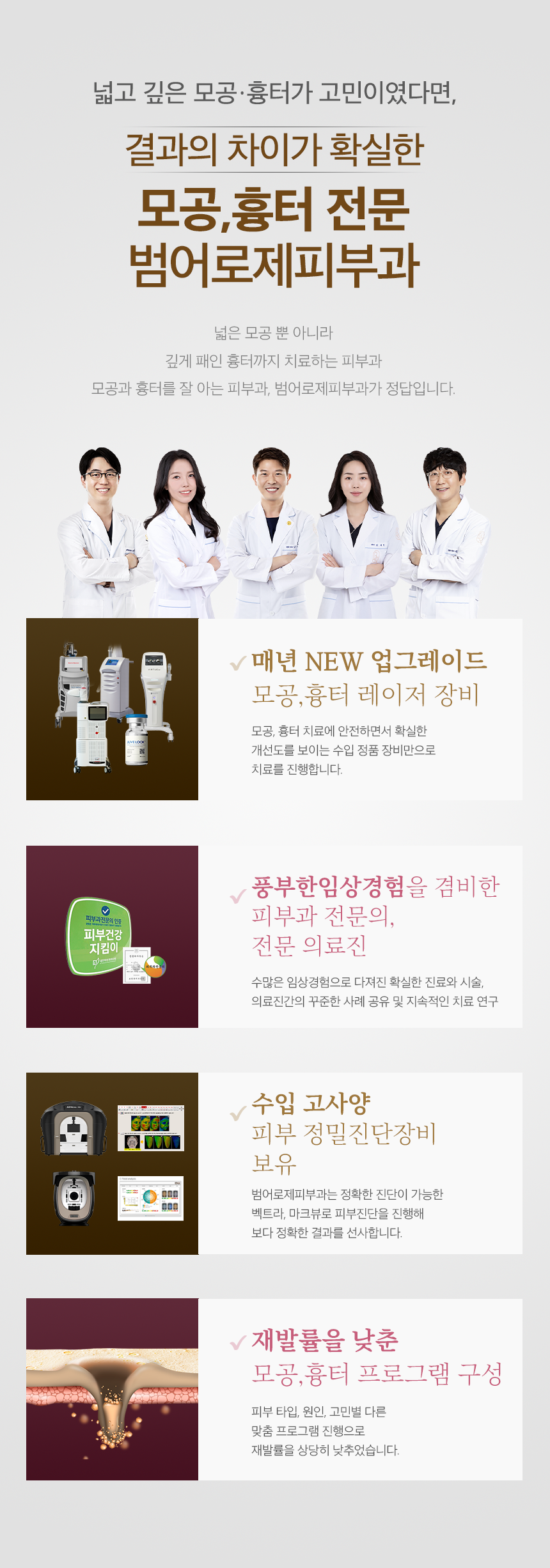 작은 변화의 시작 범어로제피부과 ㅣ SINCE 2005 · 6인의 전문의료진 · 70여대의 정품 수입 장비 →