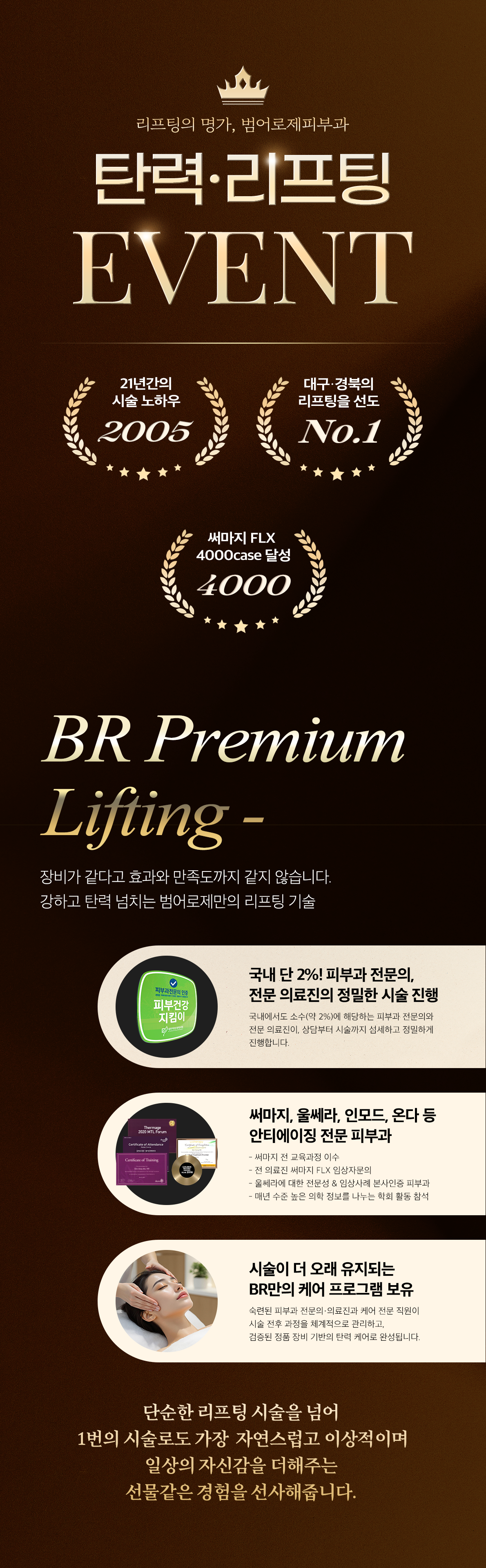 작은 변화의 시작 범어로제피부과 ㅣ SINCE 2005 · 6인의 전문의료진 · 70여대의 정품 수입 장비 →