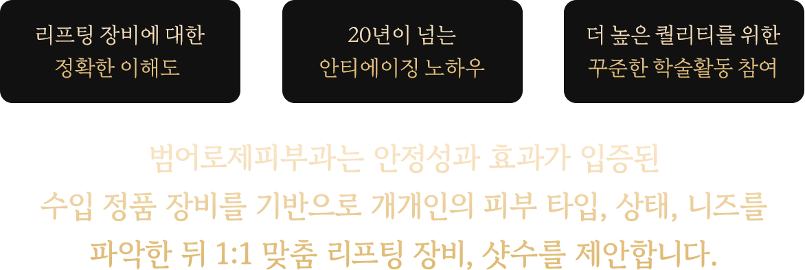 작은 변화의 시작 범어로제피부과 ㅣ SINCE 2005 · 6인의 전문의료진 · 70여대의 정품 수입 장비 →